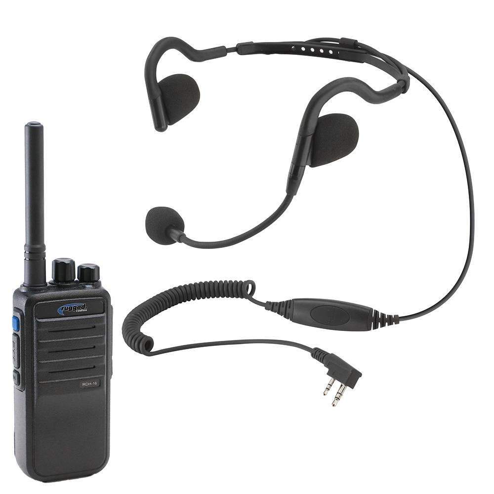The 2-pin design connects instantly to the Rugged Radios V3, RDH, RH5R, Baofeng UV5R, and Kenwood 2-pin handheld radios.