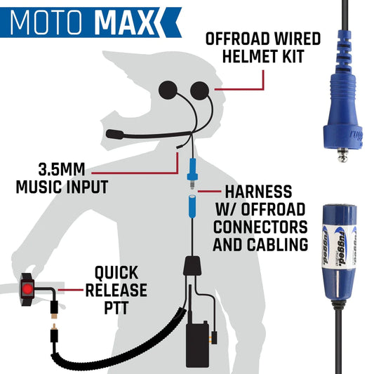 MOTO MAX Kit with Radio, Helmet Kit, Harness, and Handlebar Push-To-Talk