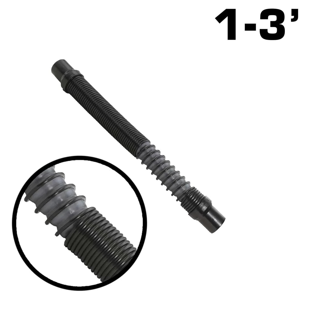 Capable of stretching between 1-3 ft and manually collapses back to its original shape when not in use. Enhanced flexibility allows multiple point adjustments between the blower system and helmet.